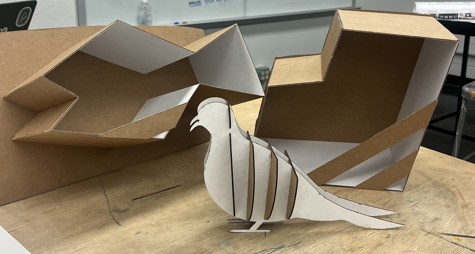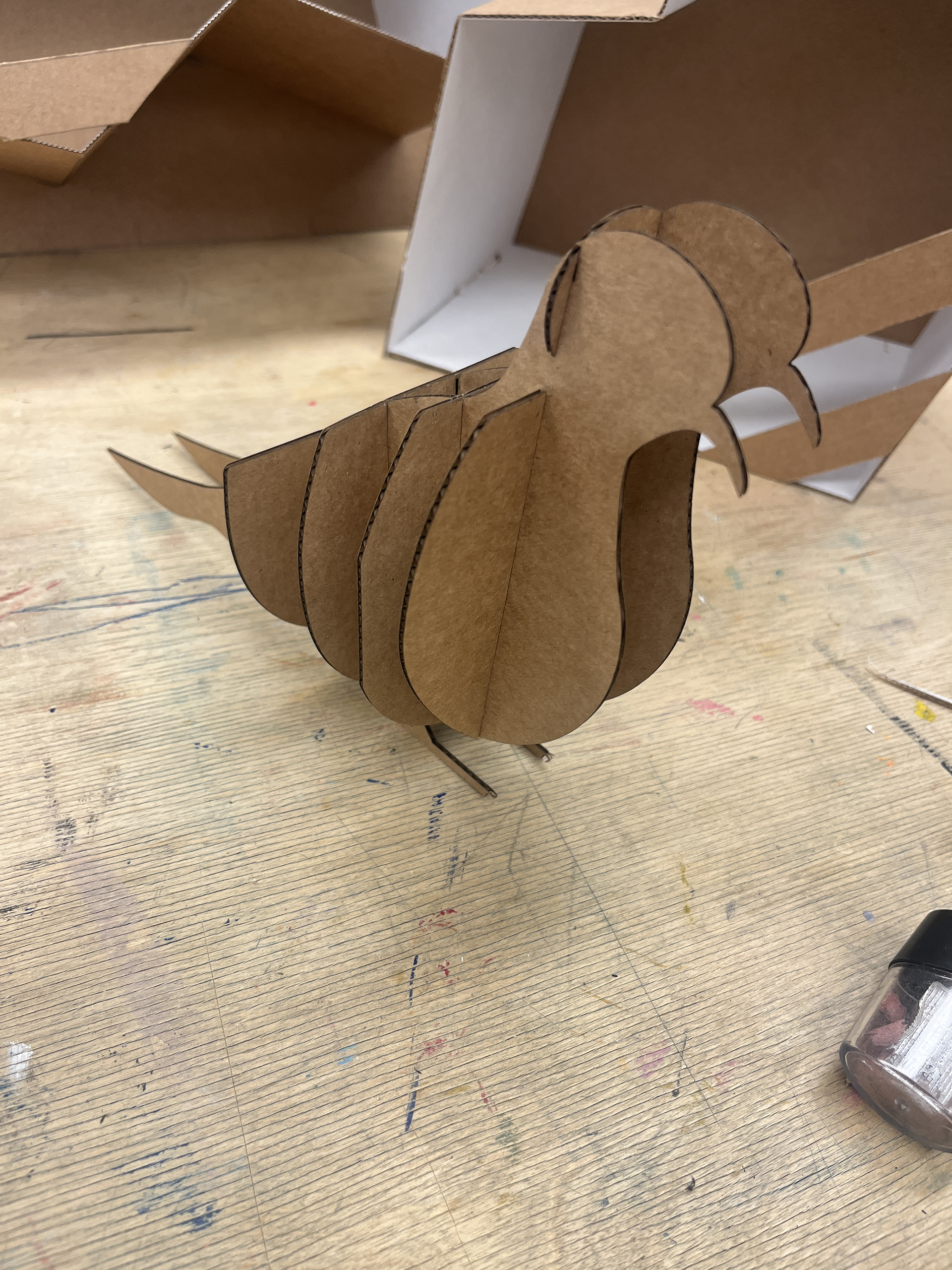 Using a rabbit laser cutter, creating a cardboard bird model, as researched to scale